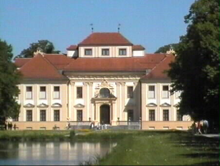 Schloß Lustheim befindet sich gegenüber des 1 km entfernten Alten Schlosses. Umgeben von einem Ringkanal konnte es damals auch nur mit einem Boot erreicht werden.