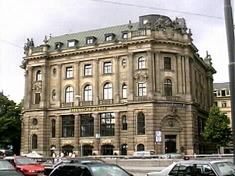 Das Gebäude der Deutschen Bank ist ein Bauwerk, welches mit seinen kolossalen Säulen und bewegten Bauplastiken einen regelrecht pompösen Eindruck macht. Seit 1963 ist das Gebäude Sitz der Bayrischen Börse.