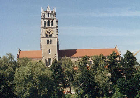 St. Maximilian is lain according to the river course of the Isar and oriented by north to south which makes it visible from a far distance.