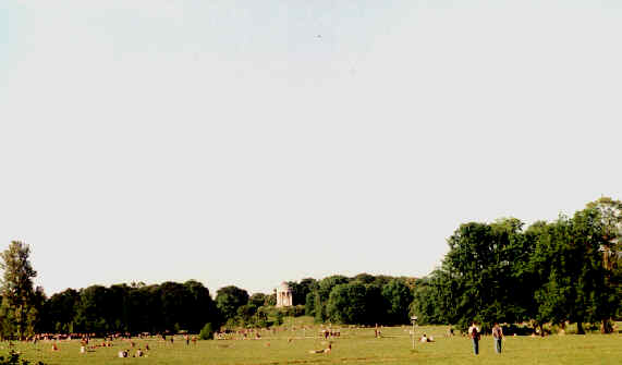 The Englische Garten(English garden) is with its 366 hectare size the city's biggest park. It was founded 1781, at this period people wanted to have natural looking parks in stead of the very arranged and geometric French gardens they had before. Nowadays the garden is frequented by locals for playing games, music or sunbathing. At one end there is probably the only nudists area close to the city center in the world.