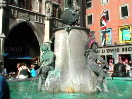 Der Fischbrunnen ist einer der ältesten Brunnen in München. Hier fanden traditionell die Gesellentaufen der Metzgerlehrlinge statt.