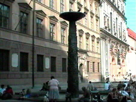 The Richard-Straussbrunnen (fountain) was established by the city Munich for its composer. They selected however not a statue, but rather the subject of the Salome, Richard Strauss' best known opera. The bronze column shows representations out of the opera together with some lyrics. In the upper part, also pictures of Strauss and his family are found.