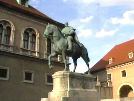 Dem beliebten Prinzregenten Luitpold wurde nach seinem Tod vor dem bayrischen Nationalmuseum dieses monumentale Reiterdenkmal aus Bronze gewidmet.