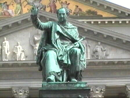 Maximilian I. war zunächst nicht mit dem Entwurf von L.v. Klenze und J.M.v. Wagner zufrieden, da er eigentlich lieber stehend dargestellt werden wollte. Nach seinem Tod entschied sich jedoch sein Sohn Ludwig I für diese Stellung, die den König in gebietender Pose zeigt.