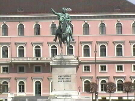 Auf einem der schönsten und vornehmsten Plätze der Stadt steht auf einem steinernen Sockel das bronzene Reiterstandbild von Maimilian dem I., einem beachtlichen Bildhauerwerk des Klassizismus, gegossen von J.B. Stiglmayr.