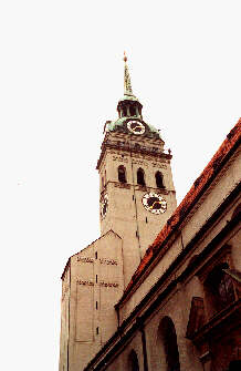 St. Peter ist das älteste Gebäude im Kern Münchens. Der erste romanische Bau stammt wohl aus dem 12. Jahrhundert. 1294 wurde der erste gotische Umbau fertiggestellt, dem ein weiterer in der 2. Hälfte des 14. Jh. folgte. Schließlich erhielt der Alte Peter, wie die Kirche auch genannt wird, 1630/1636 eine Renaissance-Erweiterung. Trotz einer fast gänzlichen Zerstörung im 2. Weltkrieg wurde die Kirche vor allem auf Drängen der Münchner Bürger wieder restauriert. Empfehlenswert ist es die 297 Stufen zur 97m hohen Aussichtsplattform zu erklimmen, da man von dort einen herrlichen Überblick über den Stadtkern hat. Bei Föhnlagen geht die Sicht bis zu den Alpen.