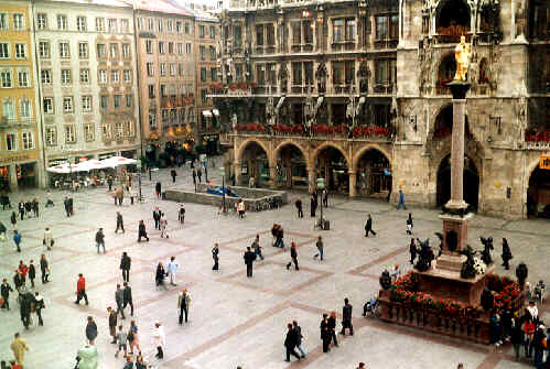 Der Marienplatz war früher der Marktplatz Münchens. Im Mittelpunkt des Platzes steht die Mariensäule. Seinen Namen erhielt der Marienplatz jedoch erst 1854, nachdem eine schwere Choleraepidemie unter Zuhilfenahme der Muttergottes, wie man damals glaubte, überwunden wurde.