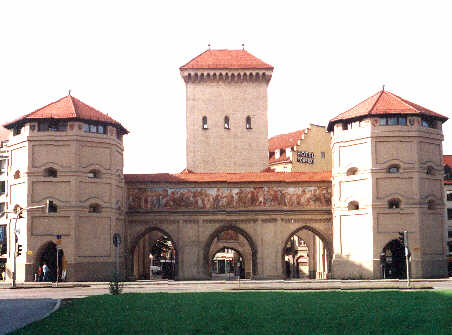 Das Isartor ist ein Baudenkmal aus der Zeit Ludwig des Bayern. Im Jahre 1833 wurde es von F. v. Gärtner im Auftrag von König Ludwig I. wiederhergestellt. Aus dieser Zeit stammen auch Historien-Wandfresken von Bernhard Neher(1835), die den "Triumphzug Ludwigs des Bayern nach seiner siegreichen Schlacht gegen den Habsburger Friederich den Schönen bei Mühldorf im Jahre 1322" zeigt. Ebenso befindet sich dort das Valentinmusäum mit einem Cafebetrieb.
